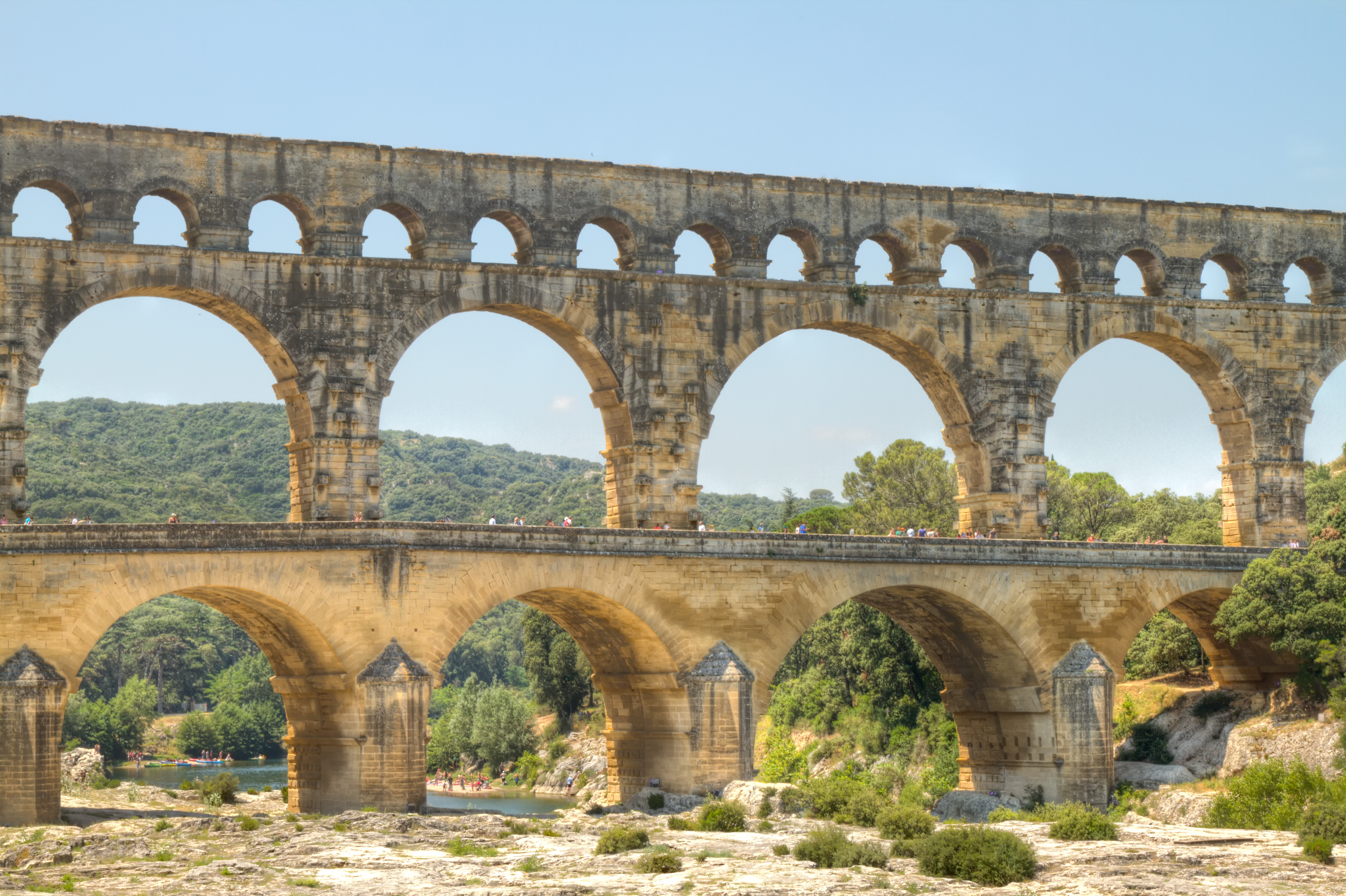 Pont du Gard is an ancient aqueduct bridge crossing the Gardon River that was built by the Romans in the 1st century AD. It is part of the 50-km long (31 miles) aqueduct system that stretched from the natural springs in Uzès to the Roman colony in Nîmes. Today, it is UNESCO World Heritage Site and a fun park to visit with your family.