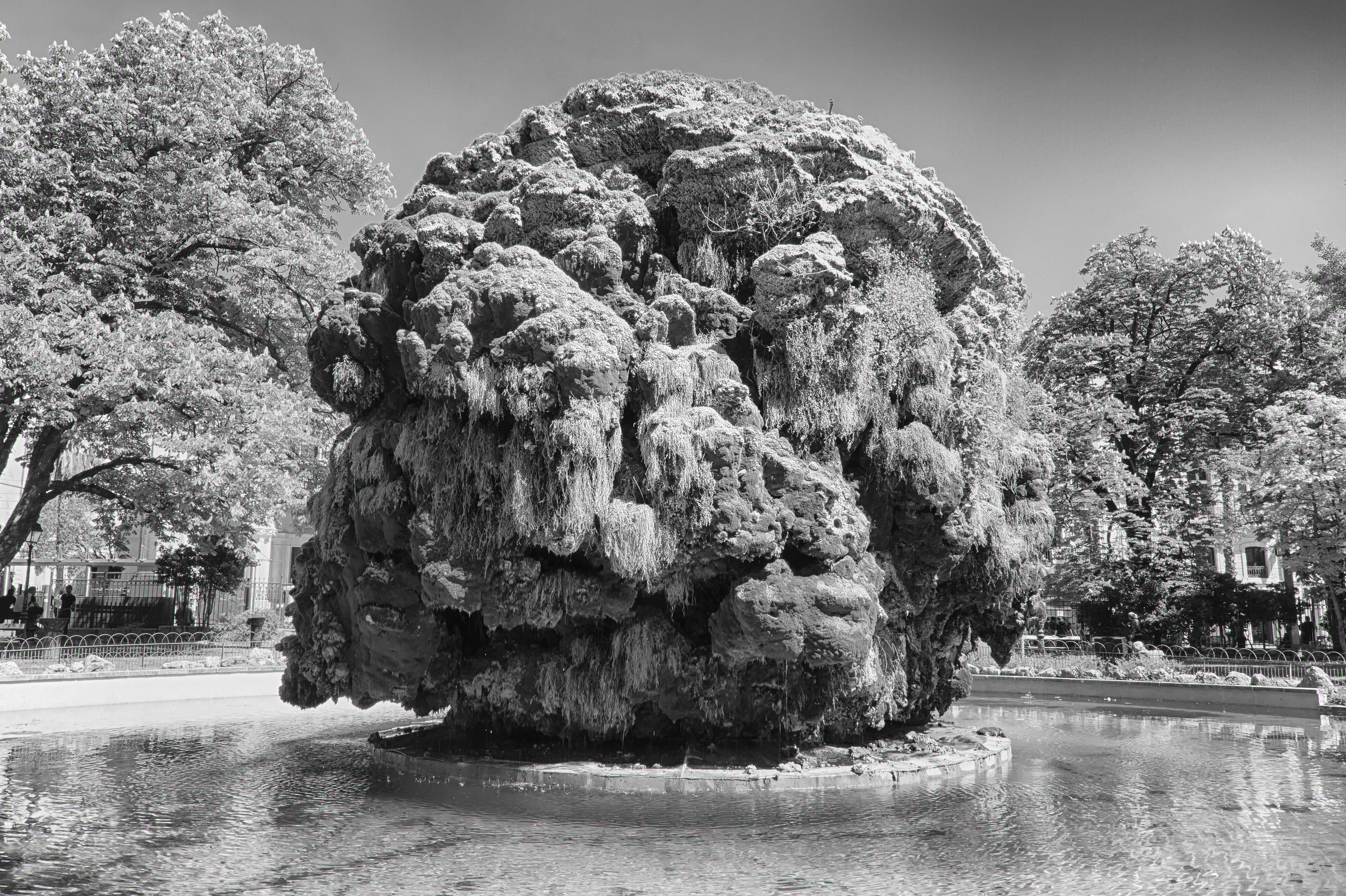 Montpellier is the host of this Weekly Special. I was walking through the Square Planchon when I snapped this picture. The rock in the center of the pool has been overtaken by nature to create this “champignon de mousse” (moss mushroom). It is impressive in color, but I found more disturbing in BW.
